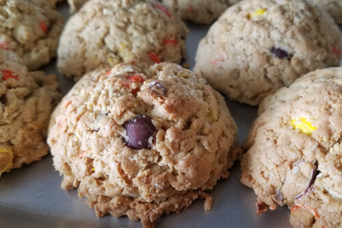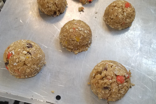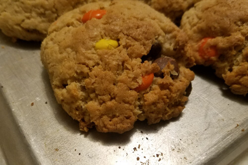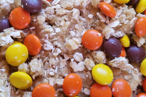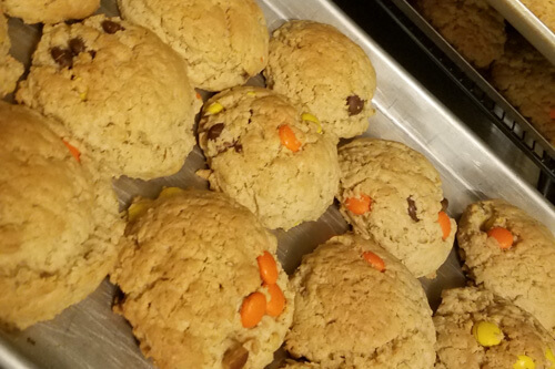 This great mix of flavors contains a spin on our traditional cowboy cookie dough with the chips removed and Reese’s pieces in their please for the peanut butter flare lovers, in the middle is our Applesauce cookie bars, which have been a family and extended family favorite for three generations being sourced from a great grandmother Opal Allred Gomm, its a cake like dropped cookie more pumpkin like and is a bar now with cinnamon, Nutmeg and clove and 2x the sauce originally containing raisins, however, I am glad my grandma swapped in Semi-Sweet chips. The last item incorporated is our recently developed Pumpkin chip which contains Idaho sugar beet sourced sugars and a five spice mix we studied some traditional mixes as old as the pilgrims to develop and semi-sweet chips providing the final touch. This is a lot of fun to share some great wholesome and two family sourced favorites with each of you!
