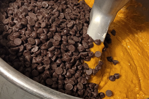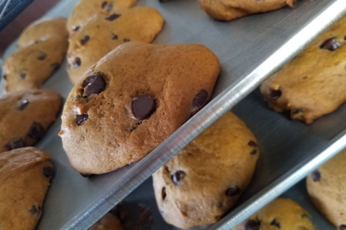 A carefully balanced cookie inspired with pumpkin pie like spice mixes from some 5 frontier and pilgrim aged recipes we studied and tested. We kicked the spices up just a bit and feature added canned pumpkin for a bold flavor, sweetened with sugar and touch of brown sugar both of the Idaho sugar beet sourced kind, and our favorite semi-sweet chips! Made with a #20 scoop for a large size!